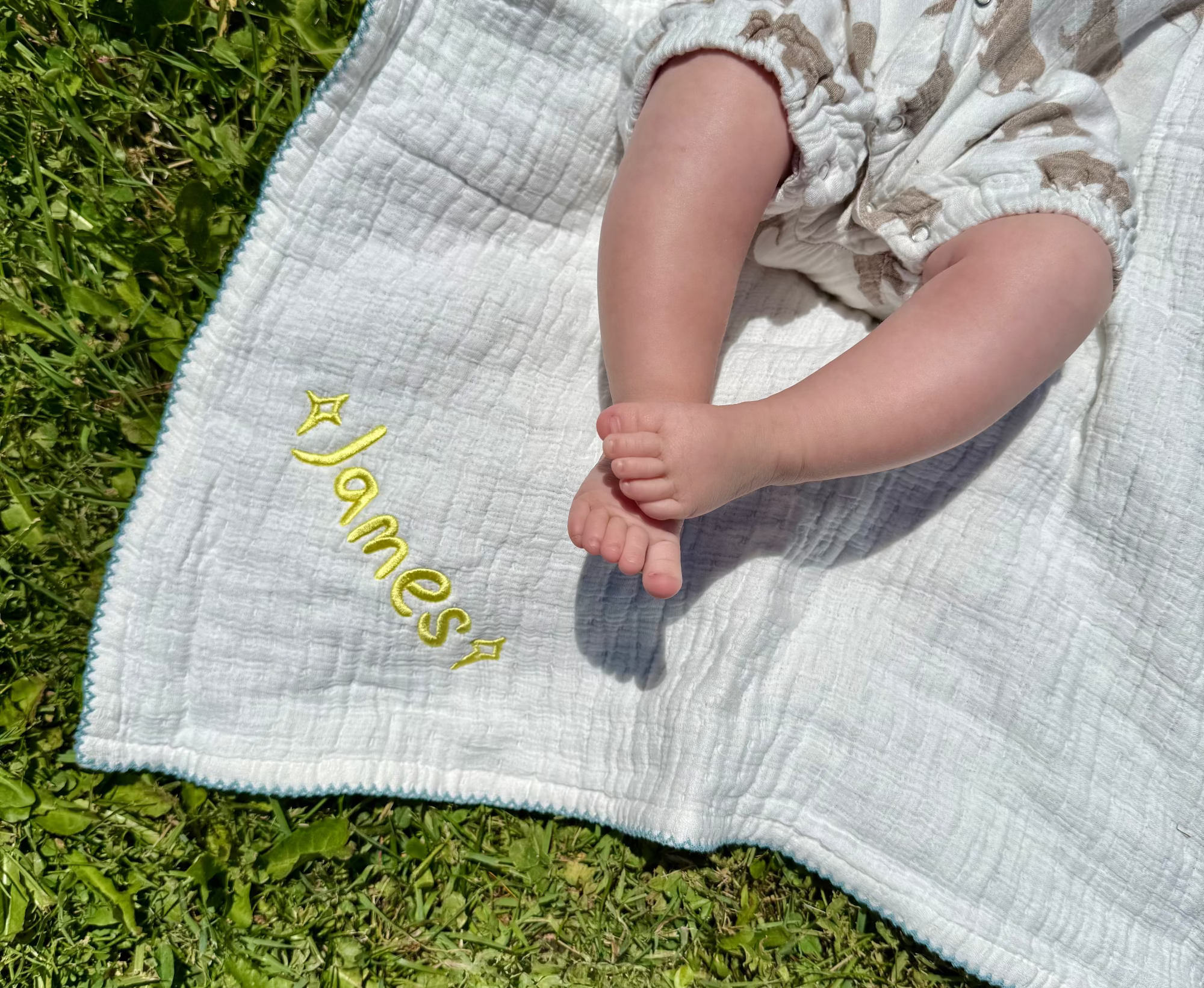 Pick your design, font, and thread color. Then type in a name, initials or phrase you would like embroidered.