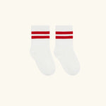 Introduce your toddler to a fun, retro style with our Red Stripe Socks. Perfect for little feet, these socks are made to keep up with your child's active lifestyle.